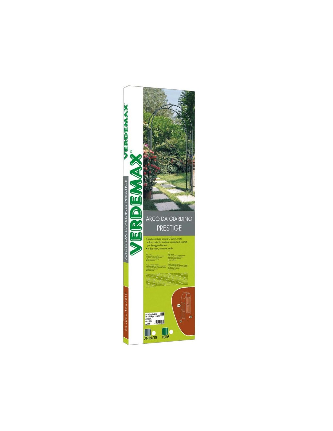L'arco in ferro verde Verdemax, con le sue dimensioni di 120x40xH219 cm, è un elemento decorativo versatile e resistente, perfetto per valorizzare qualsiasi spazio esterno. Realizzato in ferro di alta qualità e rivestito con una vernice a polvere verde, questo arco unisce estetica e funzionalità, offrendo un tocco di eleganza al tuo giardino.