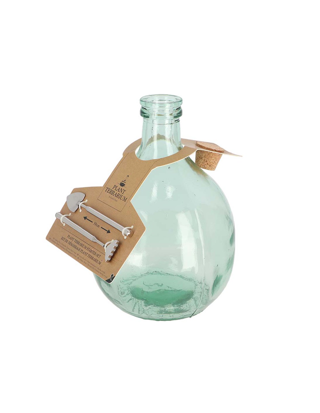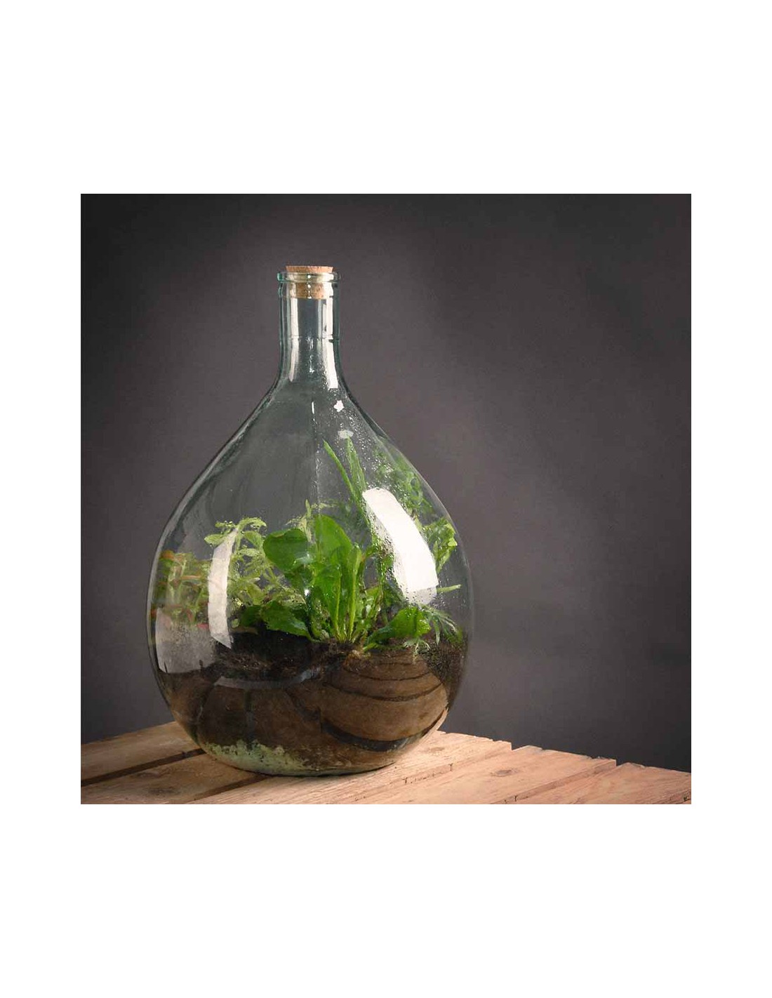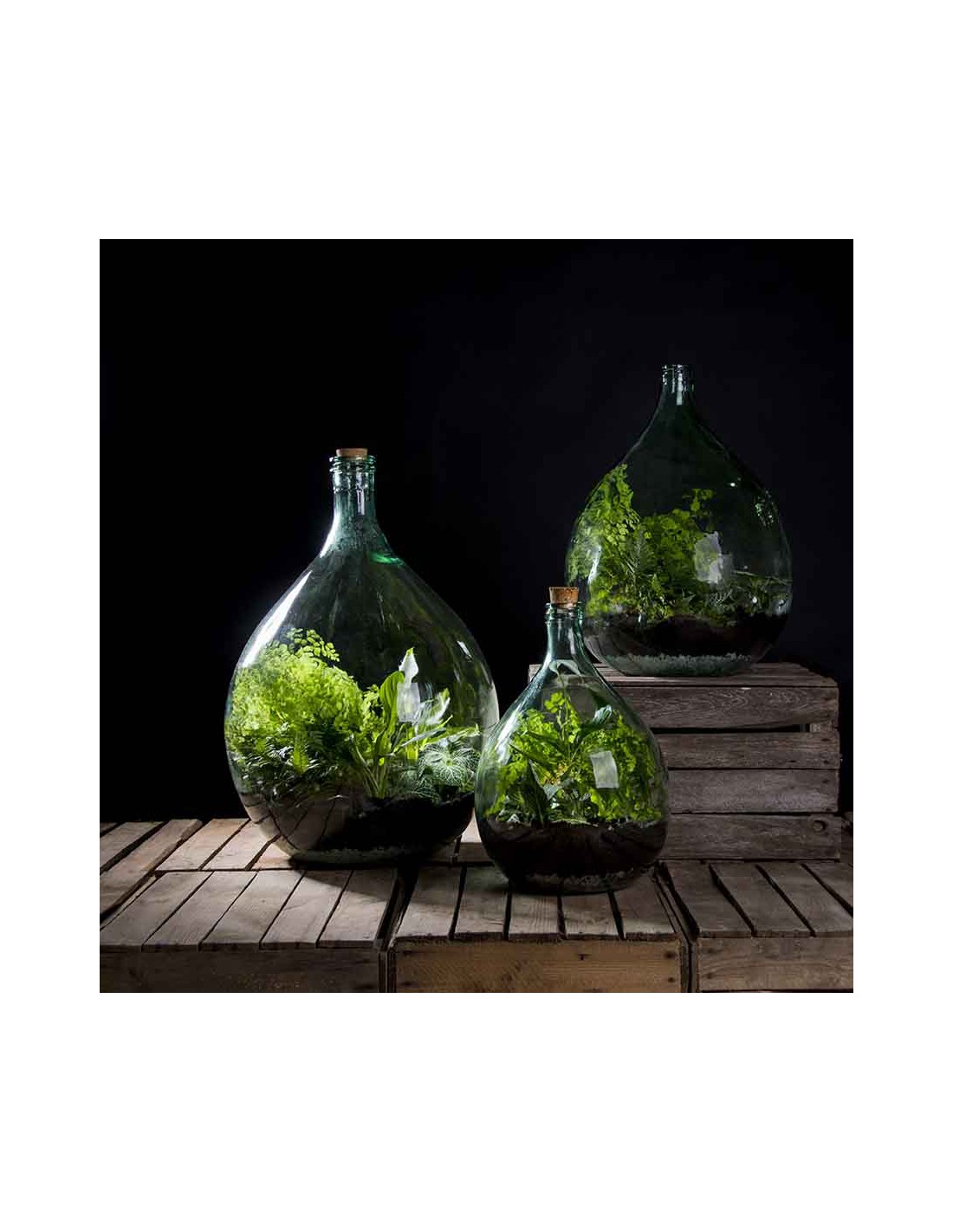 - Vaso in Vetro: A forma di bottiglia, con una capacità di 5 litri, ideale per ospitare un giardino in miniatura.
