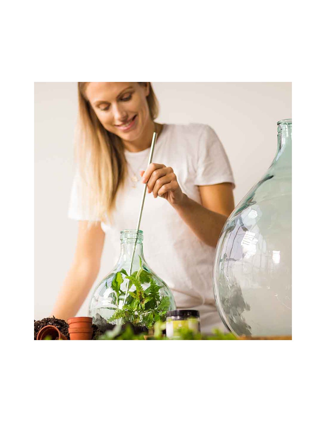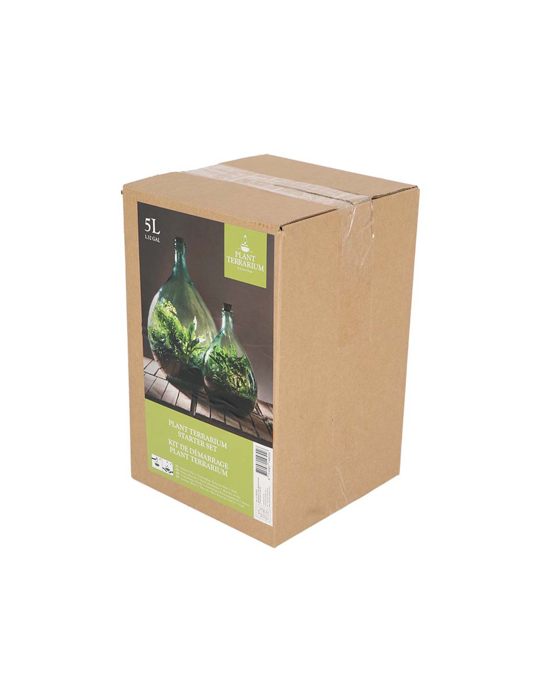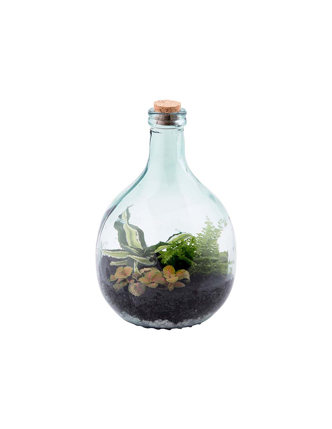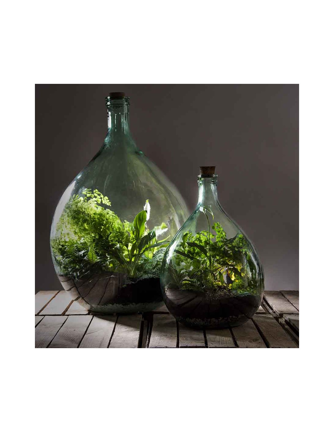 - Vaso in Vetro: A forma di bottiglia, con una capacità di 5 litri, ideale per ospitare un giardino in miniatura.