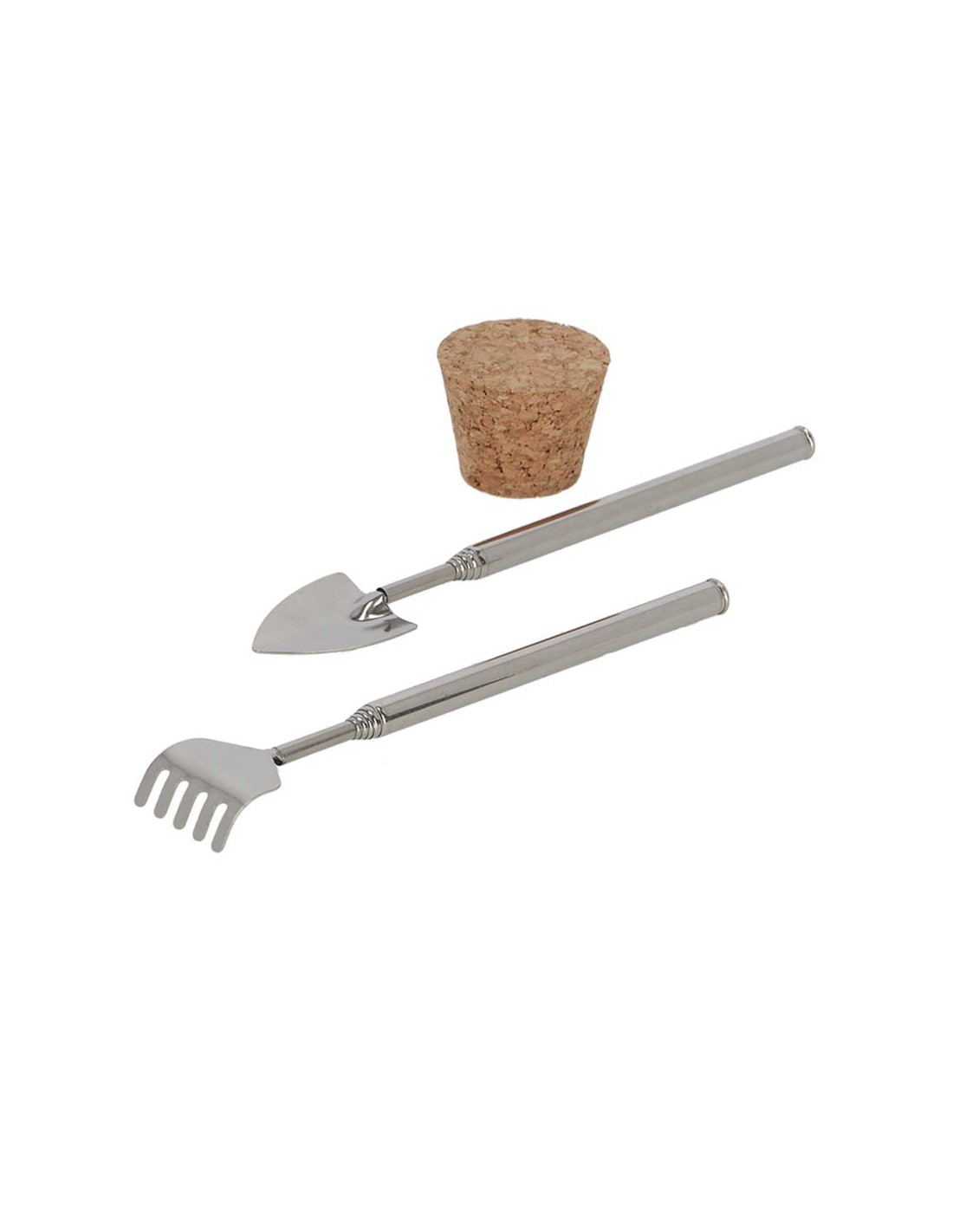 - Attrezzi Telescopici: Un cucchiaio e una forchettina, entrambi estensibili fino a 59 cm, per facilitare la piantumazione e la manutenzione del terrario.