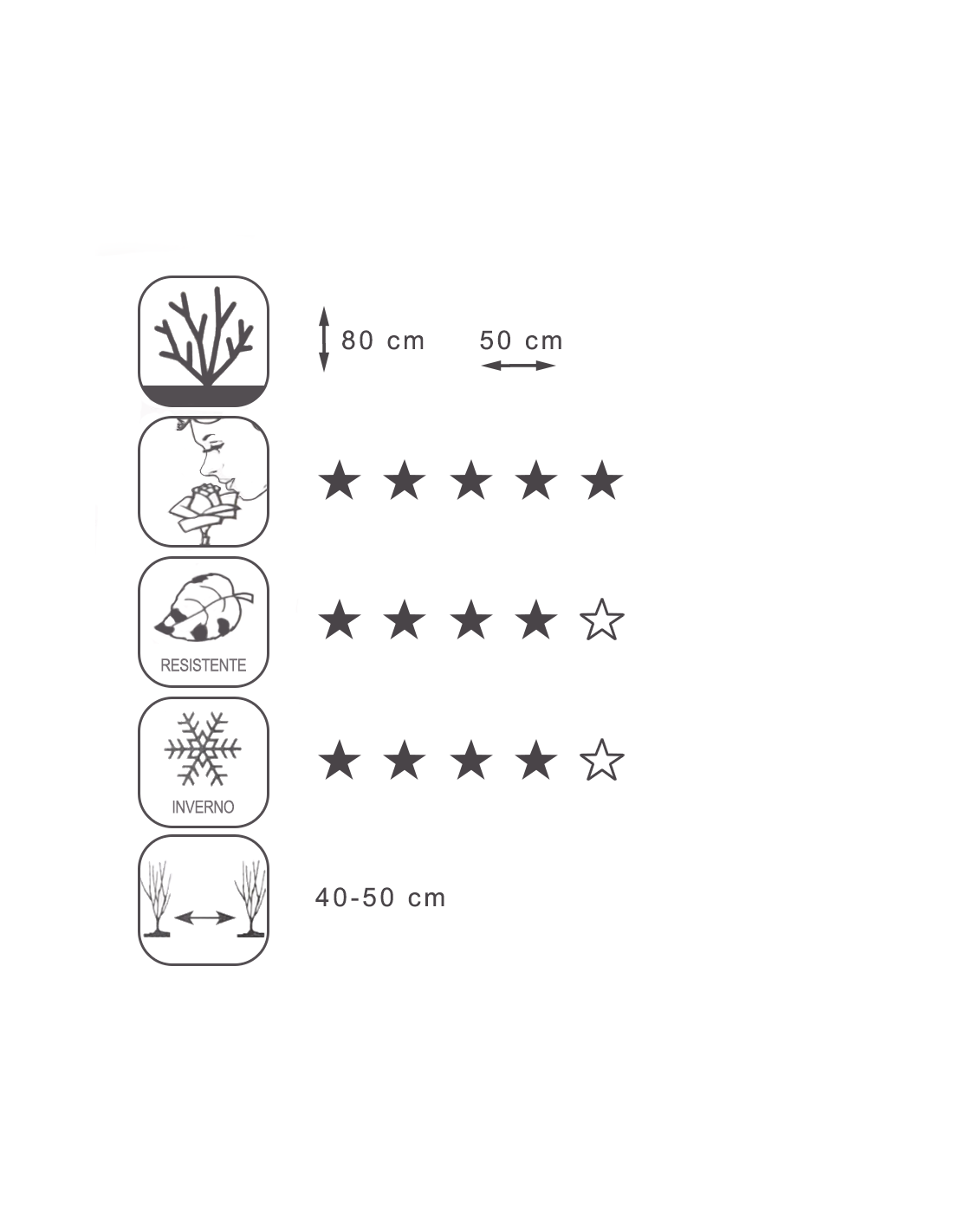 Floribunda rifiorente con portamento eretto e ben proporzionata (arriva fino a 80 cm in altezza per 40 di larghezza). Dalla profumazione intensa e fruttata.