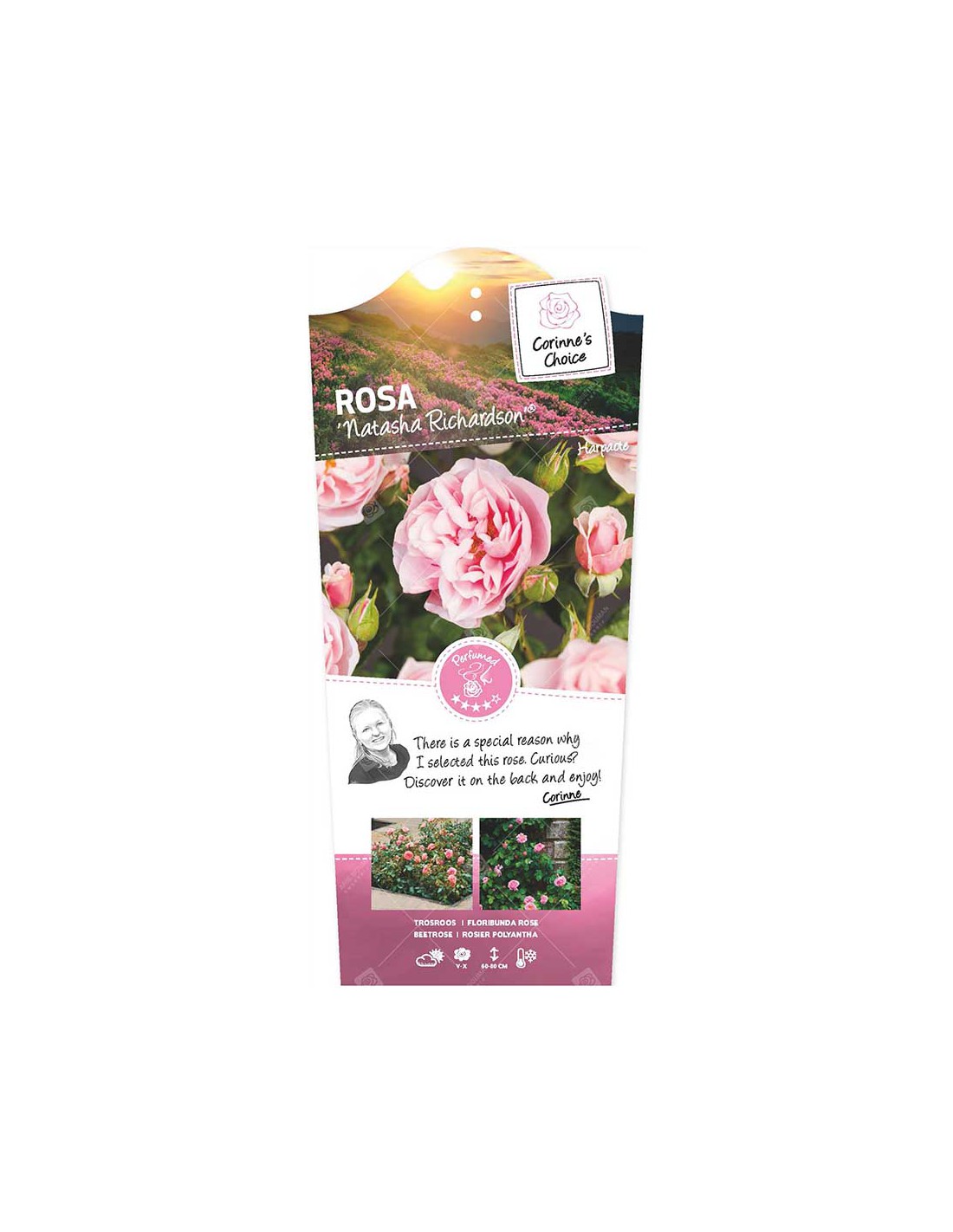 Eppure questa è una rosa moderna, con un'incredibile resistenza alle malattie, fogliame denso e un'abbondanza di fiori rosa, che sono di colore puro e nitido, abbondanti in quantità e portano il profumo più incantevole.