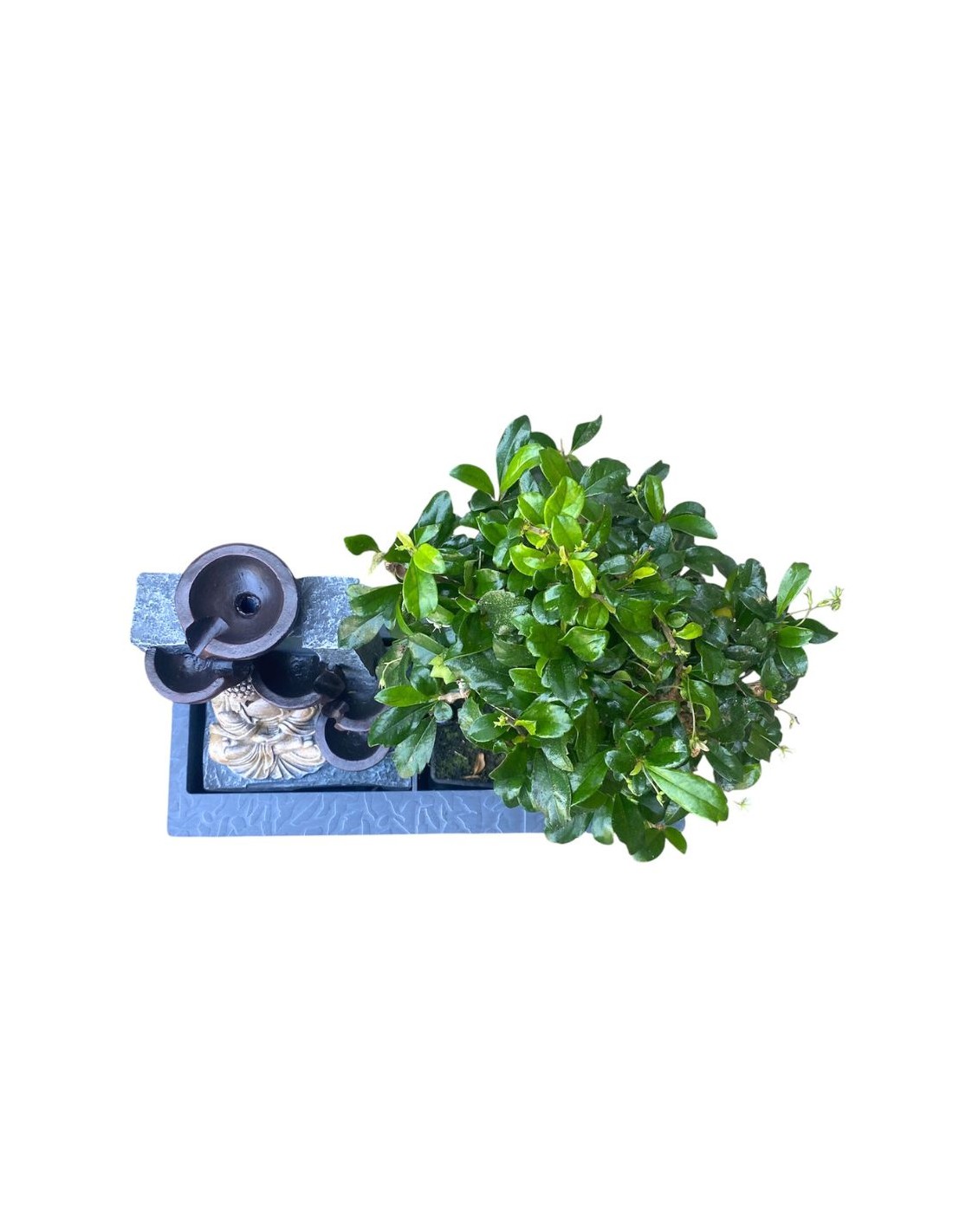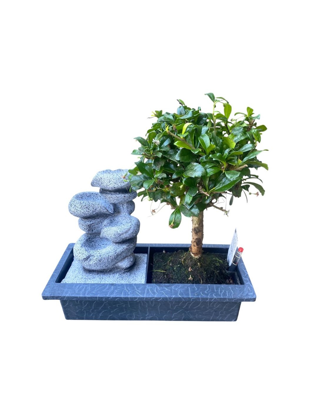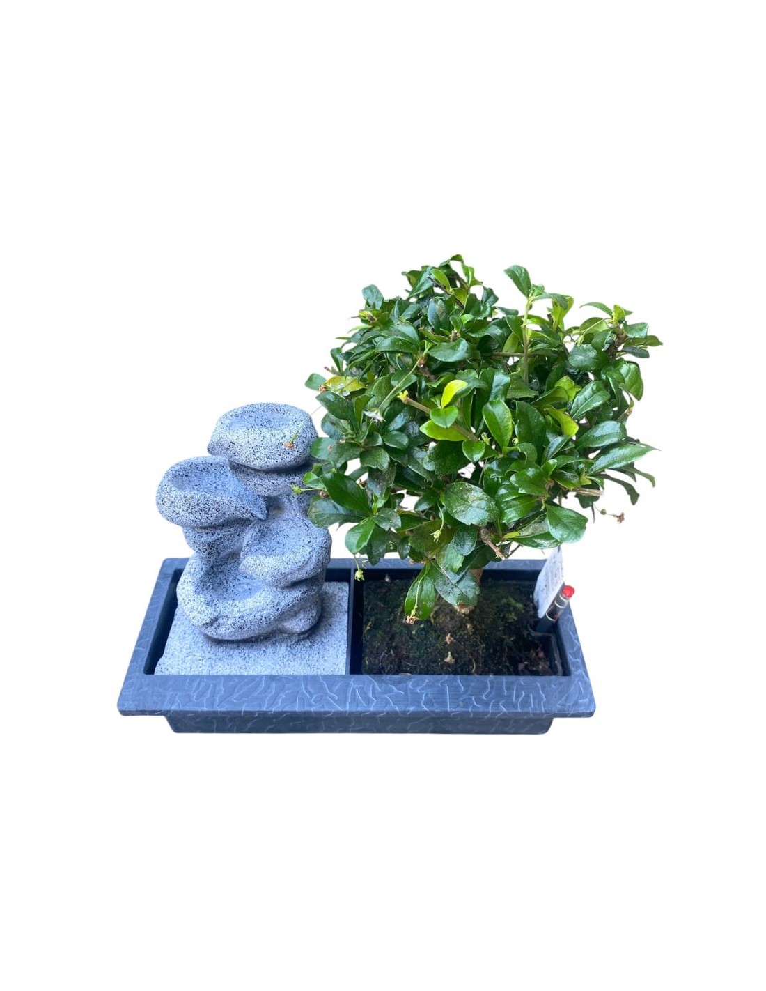 Il bonsai con fontana non è solo una pianta, ma una vera e propria opera d'arte vivente, un micro-ecosistema che porta l'armonia della natura direttamente nella tua casa. Con le sue dimensioni compatte, un vaso di 29 cm e un'altezza di 30 cm, si adatta perfettamente a qualsiasi spazio interno, trasformandolo in un angolo di serenità e contemplazione. La fontana integrata aggiunge un tocco di magia, creando il suono rilassante dello scorrere dell'acqua, un elemento di benessere che amplifica l'effetto meditativo della pianta. Questi esemplari, spesso appartenenti a varietà resistenti come il Ficus Retusa o la Carmona, sono ideali anche per chi si avvicina per la prima volta al mondo del bonsai.