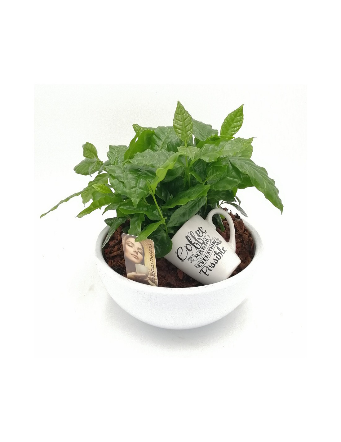 Stai cercando un regalo originale e apprezzato per una persona cara? Che ne dici di una Coffea arabica, la pianta del caffè, in un elegante vaso di ceramica? Non solo un oggetto decorativo, ma un vero e proprio pezzo di natura da portare a casa, con il fascino esotico nel proprio appartamento.