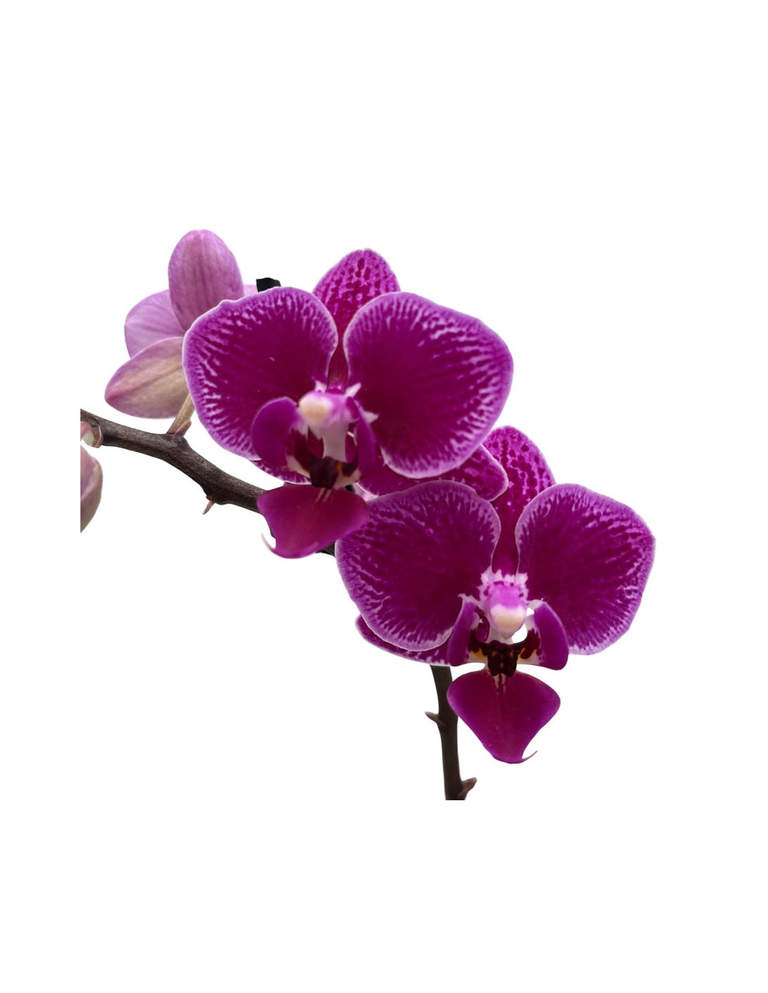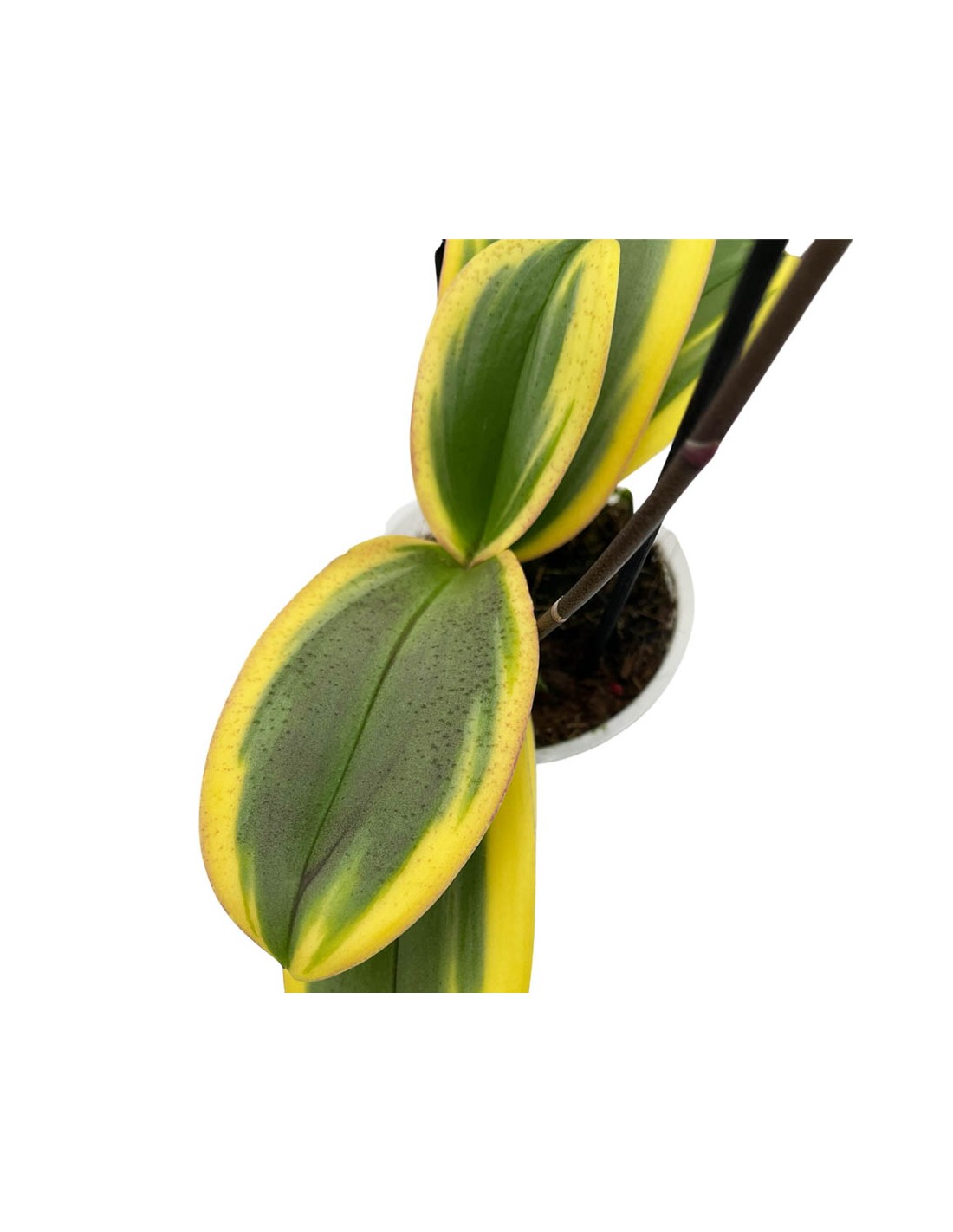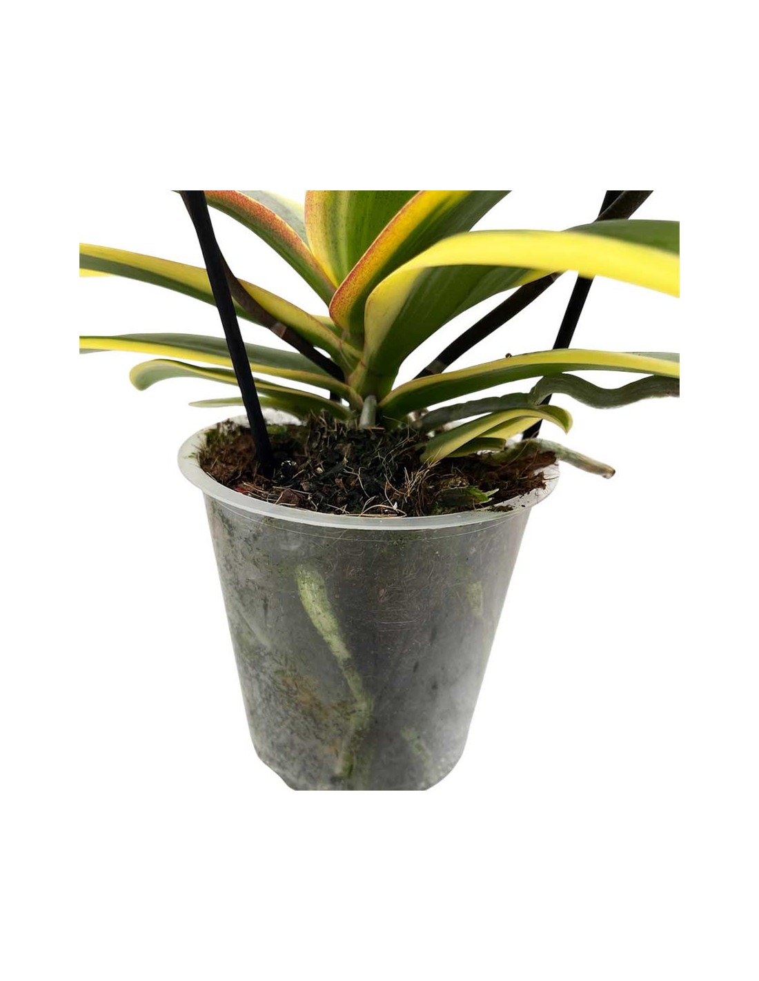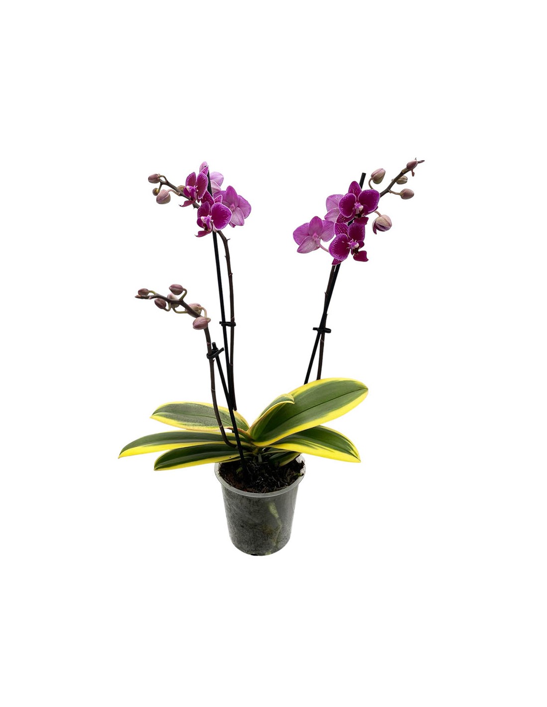 Lasciati sedurre dalla bellezza unica dell'Orchidea Phalaenopsis 'Magic Leaf', una varietà straordinaria che si distingue non solo per i suoi incantevoli fiori viola, ma soprattutto per il suo fogliame variegato, un vero spettacolo di sfumature verdi e gialle che le conferiscono un fascino ineguagliabile. Con un vaso dal diametro di 12 cm, questa Orchidee rappresenta un elemento decorativo perfetto per ogni ambiente, dal più classico al più moderno, aggiungendo un tocco di esotismo e raffinatezza. La 'Magic Leaf' è la scelta ideale sia per i neofiti che per gli appassionati, grazie alla sua relativa facilità di coltivazione e alla sua generosa fioritura.