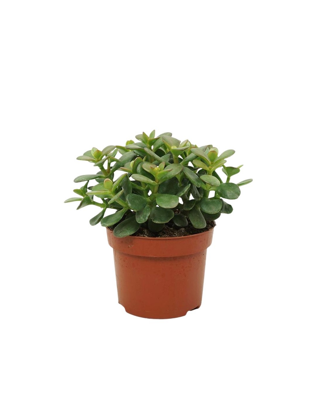 La Crassula ovata 'Minor' mantiene il portamento arbustivo della specie tipo, ma in una scala ridotta. I suoi fusti, carnosi e ramificati, tendono a lignificare con l'età, assumendo un aspetto legnoso che le conferisce la grazia di un piccolo albero in miniatura. Le foglie sono la sua caratteristica più distintiva: piccole, ovali e carnose, di un verde brillante e lucido. Se esposta a luce solare intensa o a temperature più fresche, i margini delle foglie possono sviluppare una sfumatura rossastra, aggiungendo un tocco di colore e vivacità. Questa caratteristica, unita alla sua forma compatta e densa, la rende estremamente decorativa. Essendo una succulenta, le foglie immagazzinano acqua, rendendola molto resistente alla siccità. La sua crescita è più lenta rispetto alla Crassula ovata standard, il che la rende ideale per chi desidera una pianta che mantenga le sue dimensioni ridotte più a lungo. Se la pianta è matura e le condizioni sono ottimali, può produrre piccoli fiori stellati bianchi o rosa pallido durante l'inverno.