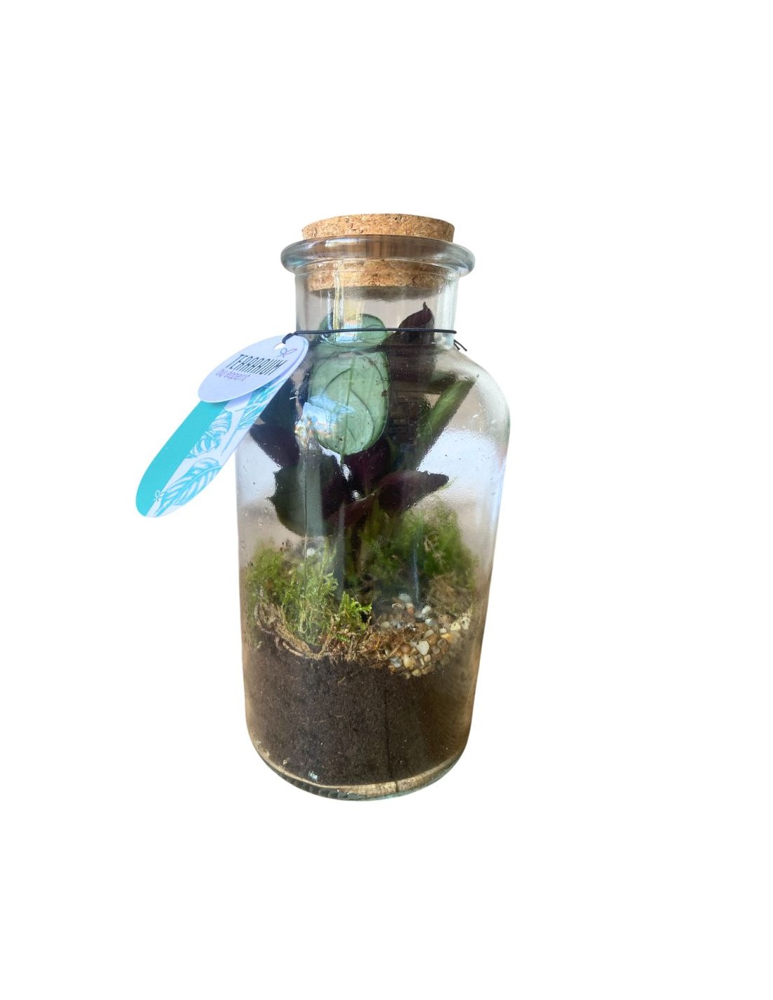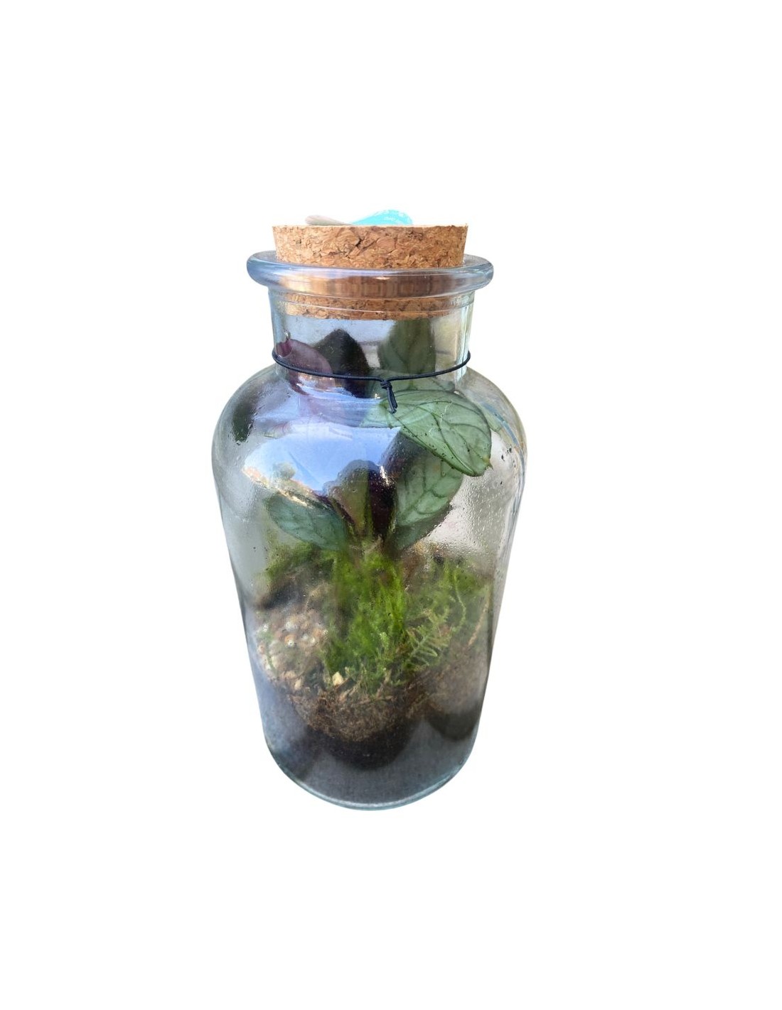 Questo terrario è un contenitore in vetro, dal diametro di 10 cm, dove viene ricreato un ambiente umido e rigoglioso, ideale per la crescita di piante che prosperano in climi tropicali. Il suo design semplice e pulito, con il tappo in sughero, non solo è esteticamente gradevole, ma serve a sigillare l'ambiente, creando un ciclo dell'acqua che rende l'ecosistema praticamente autosufficiente.