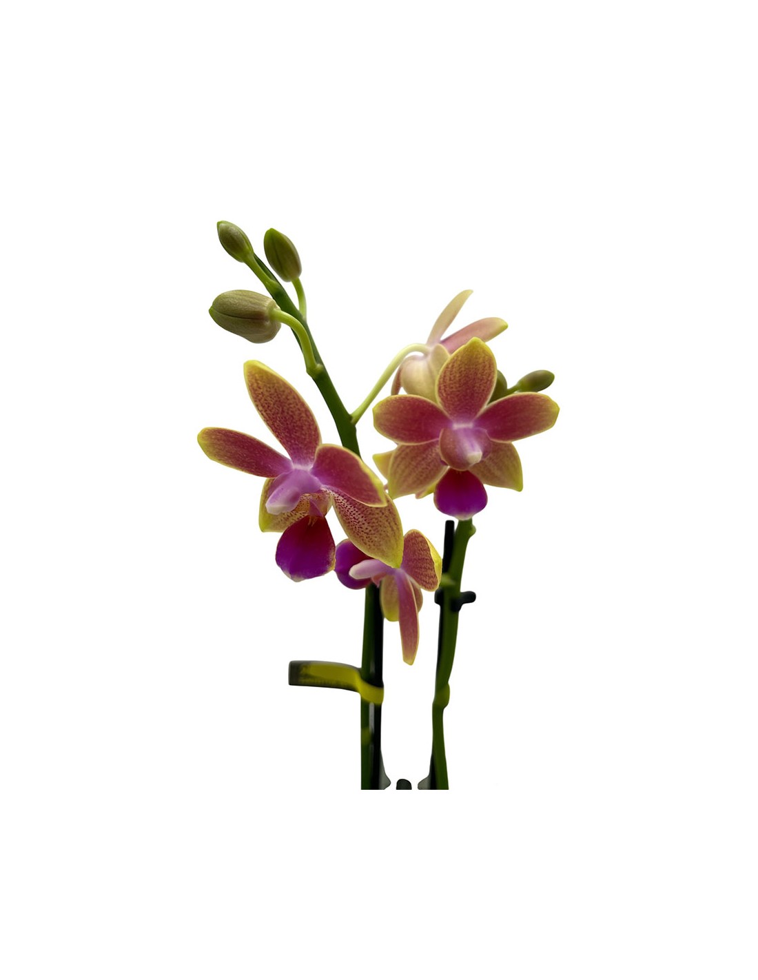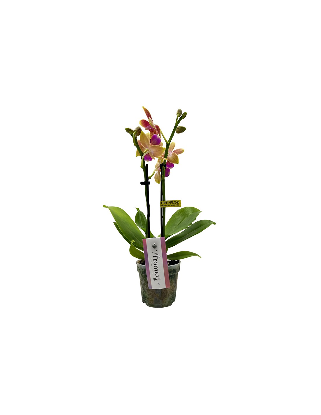 Scopri il fascino unico della Phalaenopsis Aromio Fresh nella splendida combinazione di rosa e porpora, un'autentica opera d'arte botanica. Questa Orchidea ibrida non si limita a offrire una fioritura duratura dai colori vivaci e sfumati, ma si distingue nettamente grazie alla sua inattesa e gradevole profumazione. È proprio questa caratteristica olfattiva, che aggiunge un ulteriore strato di piacere sensoriale, a renderla una scelta eccellente e ricercata come piante e fiore da interno. L'aroma leggero, tipico della serie Aromio Fresh, trasforma ogni stanza in un ambiente accogliente ed esclusivo.