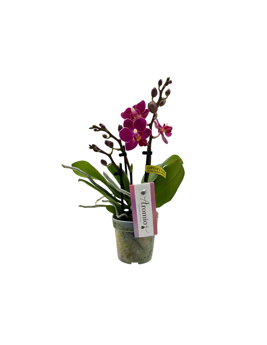 La Phalaenopsis, universalmente nota come orchidea falena, è celebre per la sua fioritura prolungata e la relativa semplicità di gestione. La varietà Aromio Fresh Porpora, pur mantenendo le virtù di resistenza del genere, aggiunge l'esclusività della fragranza.
