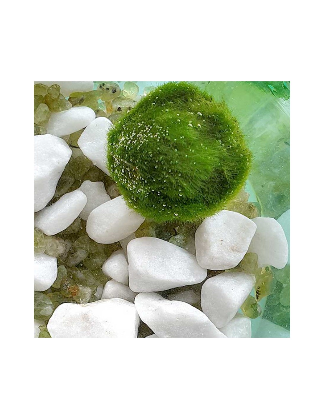 - Peculiarità "Danzante": A volte, piccole bolle di ossigeno prodotte durante la fotosintesi possono formarsi sulla sua superficie. Queste bolle possono rendere il Marimo leggermente galleggiante, facendolo "danzare" nell'acqua, un fenomeno che aggiunge magia al tuo acquario o vaso.
