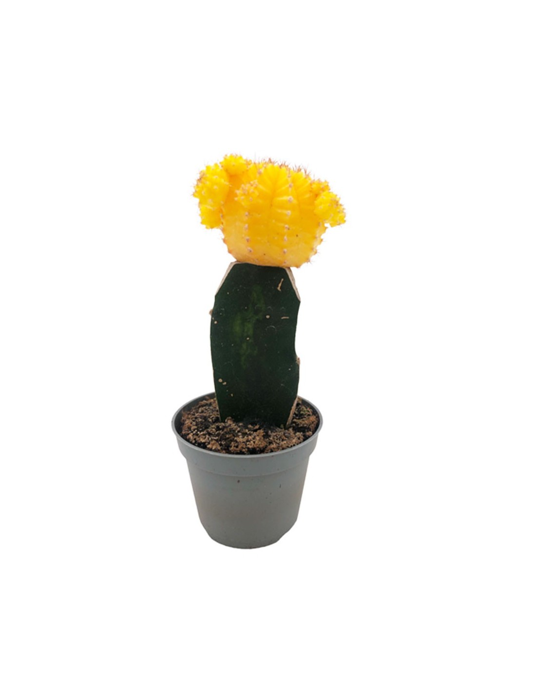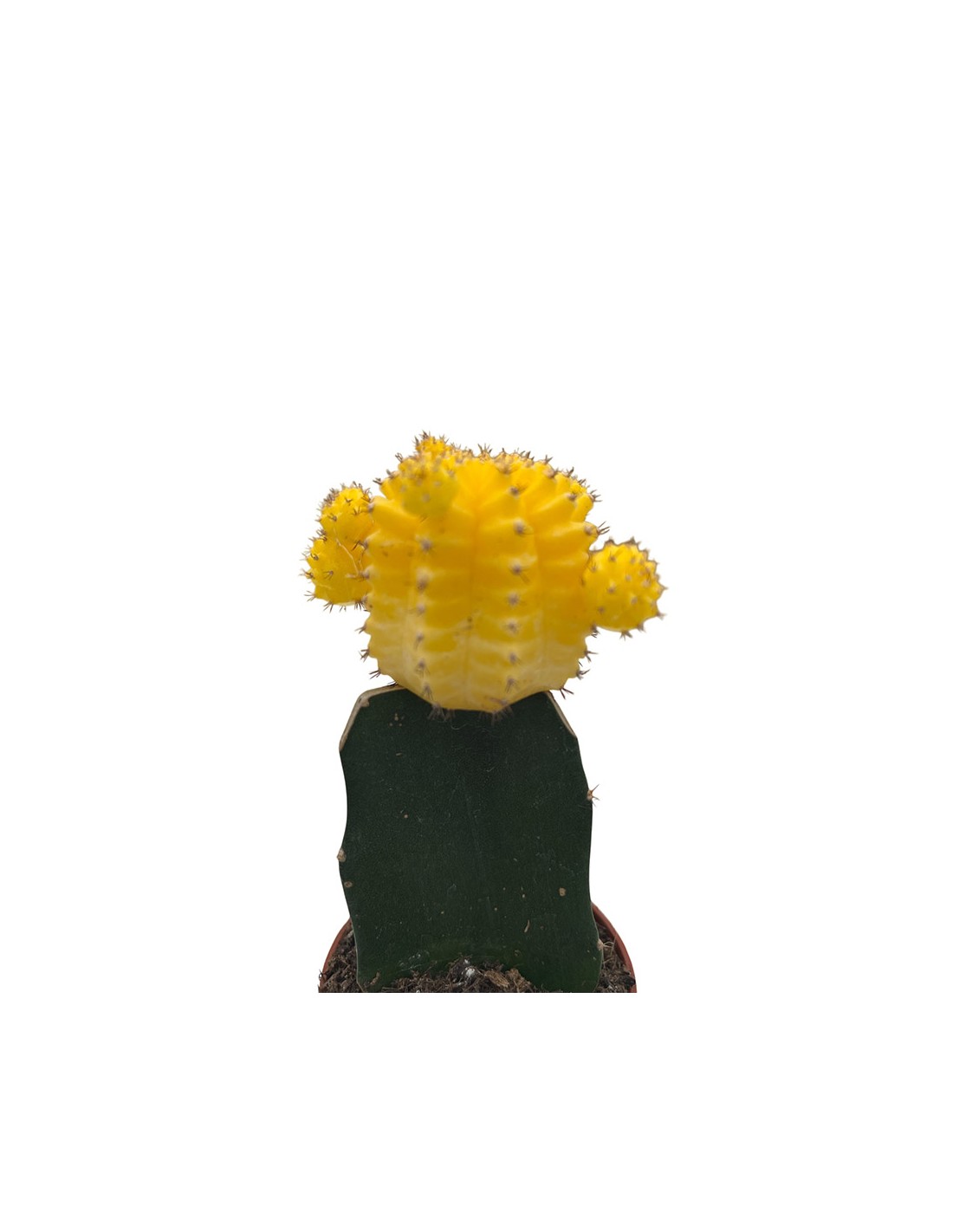 Ciò che rende questo cactus così speciale è la sua parte superiore, un mutante del Gymnocalycium mihanovichii che è totalmente o parzialmente privo di clorofilla – il pigmento che rende le piante verdi. L'assenza di clorofilla non permette a questa porzione colorata di nutrirsi autonomamente, rendendo vitale l'innesto su un fusto verde, solitamente un cactus robusto come l'Hylocereus, che funge da "portainnesto" e fornisce tutto il nutrimento necessario. Questa simbiosi crea una pianta dall'aspetto surreale, che esalta i suoi pigmenti intensi e la sua forma globosa, rendendola un punto focale decorativo e un'aggiunta eccezionale tra le Piante grasse. È una pianta di piccole dimensioni ma di grande effetto, perfetta per scrivanie, mensole o composizioni.
