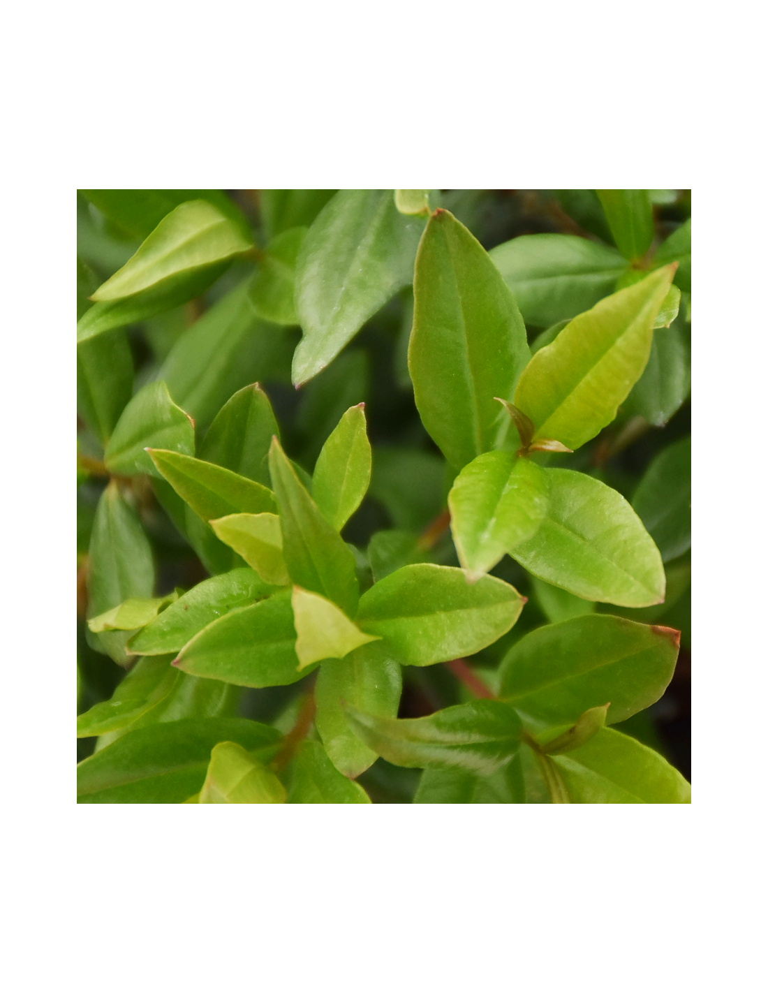 - Foglie: Le foglie sono piccole, coriacee e di colore verde scuro. Hanno una forma ovale-lanceolata e un margine intero.