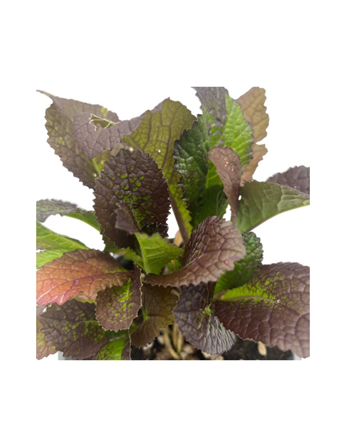 - Aspetto: La Senape Rossa presenta foglie grandi e frastagliate, di colore rosso-violaceo, che diventano più intense con l'esposizione al sole. La pianta cresce rapidamente e può raggiungere un'altezza di 30-40 cm.
