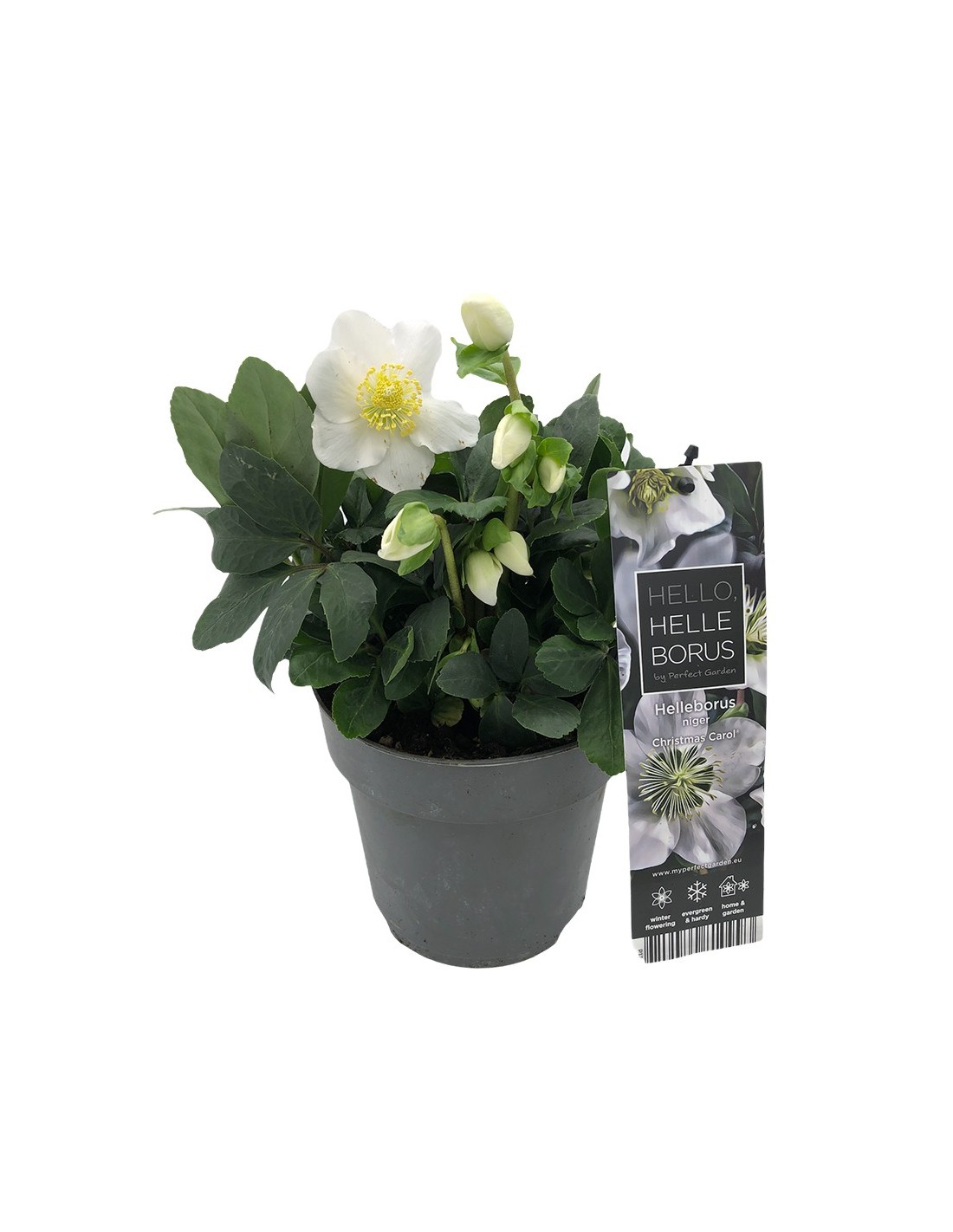 La 'Christmas Carol' si distingue per il suo portamento compatto e le sue foglie coriacee, persistenti e di un verde intenso e lucido. Ma il suo vero punto di forza sono i fiori: grandi, a forma di coppa, di un bianco candido che può sfumare leggermente in verde o rosa con l'avanzare della stagione. Questa fioritura precoce, che avviene puntualmente nel periodo natalizio e si protrae fino a marzo, la rende un elemento insostituibile tra le Piante fiorite da giardino e una magnifica decorazione per la casa durante le feste (se tenuta in un luogo fresco e luminoso). La pianta è molto resistente al gelo, tollerando temperature fino a -15 C.