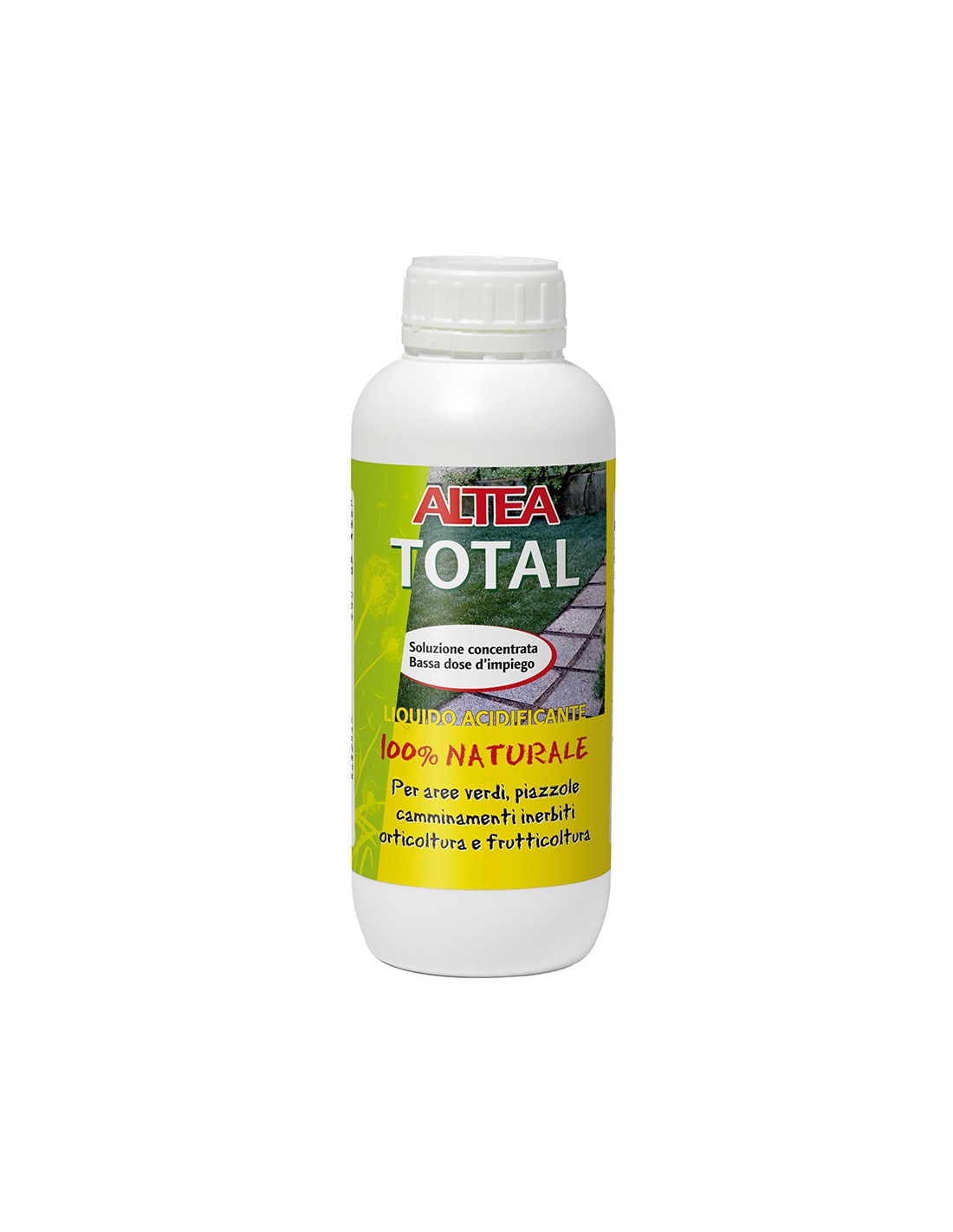 Scopri ALTEA TOTAL, un prodotto liquido 100% naturale a pH acido, specificamente studiato per migliorare la qualità delle acque utilizzate sia per l'irrigazione che per i trattamenti fogliari. La sua formula concentrata agisce efficacemente per contrastare il pH elevato e la durezza dell'acqua, fattori che spesso compromettono l'efficacia dei prodotti impiegati per la cura delle piante.