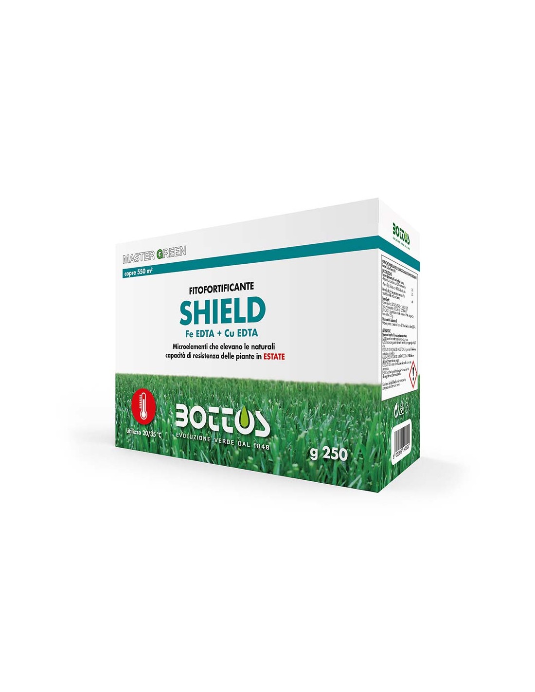 Questo concime è particolarmente attivo contro le batteriosi e risulta efficace contro le peronosporacee, rendendolo uno strumento prezioso nella prevenzione delle malattie. La sua reazione sub-acida (pH 6,5) è perfettamente in linea con le esigenze dei tappeti erbosi. SHIELD penetra all'interno della foglia con un processo translaminare e non viene dilavato, garantendo un'azione prolungata e manifestando anche un'azione cicatrizzante sui traumi da rottura.