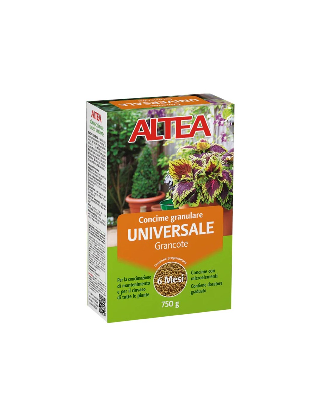 La cura costante del verde richiede soluzioni che sappiano coniugare efficacia e praticità nel tempo. Altea Grancote Universale è un concime granulare d'eccellenza, progettato con una tecnologia a membrana di avvolgimento che permette una cessione programmata degli elementi nutritivi per ben 6 mesi. Questo formulato si distingue tra i PRODOTTI PER GIARDINAGGIO E CURA DELLA PIANTA per la sua capacità di adeguare il rilascio di nutrienti in base al reale fabbisogno delle colture, evitando sprechi e garantendo una crescita equilibrata.