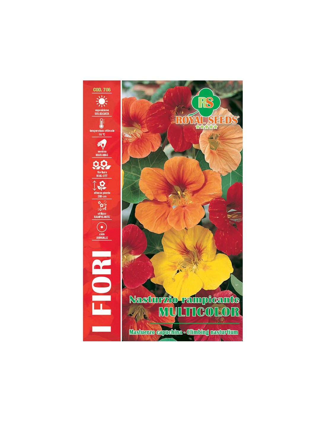 Il Nasturzio Rampicante Multicolor è una pianta annuale molto apprezzata per la sua crescita vigorosa e la sua fioritura abbondante e colorata. Con i semi Royal Seeds puoi coltivare facilmente questa pianta nel tuo giardino, balcone o terrazzo, creando un'atmosfera allegra e vivace.