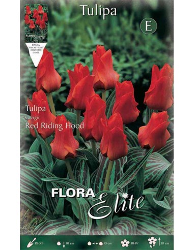 Il tulipano "Red Riding Hood" è una varietà che incanta per il suo colore rosso carminio intenso e per le striature marroni che ricordano le pagine di una fiaba. Questo tulipano, appartenente alla famiglia dei Greigii, è un vero e proprio classico che non passa mai di moda.