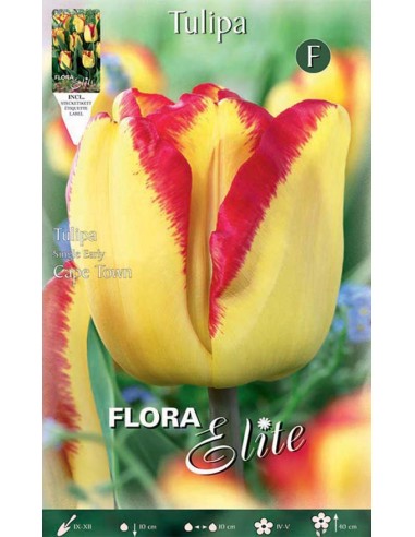 Originario dell'Asia centrale, questo tulipano precoce è stato ibridato e selezionato per ottenere la varietà 'Cape Town' che conosciamo oggi. Il nome evoca le calde atmosfere sudafricane e la sua fioritura precoce, che anticipa quella di molte altre varietà, lo rende un fiore molto atteso in primavera.