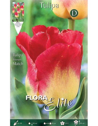 Le origini precise del tulipano "Match" si perdono nel tempo, ma la sua popolarità è dovuta alla sua vivacità e alla sua capacità di creare contrasti cromatici di grande effetto. Appartenente al gruppo dei tulipani Darwin Hybrid, si distingue per i suoi grandi fiori a forma di coppa e per il suo stelo robusto.