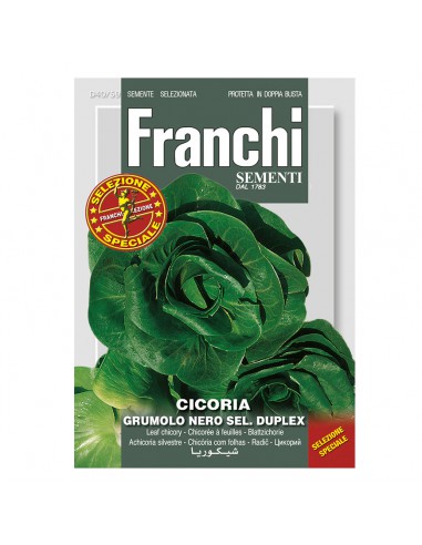 La cicoria grumolo nero è un ortaggio invernale molto apprezzato per il suo sapore amarognolo e le sue proprietà benefiche. La selezione Duplex, offerta da Franchi Sementi, è una varietà particolarmente pregiata, che si distingue per la forma compatta del grumolo e la colorazione intensa delle foglie.