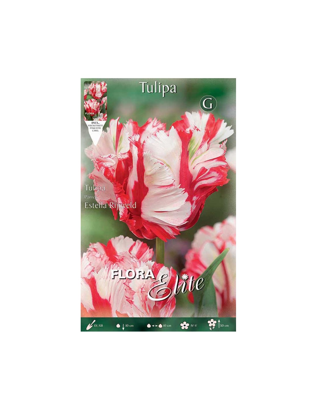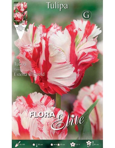 Il Tulipano Estella Rijnveld, con i suoi petali frastagliati e i colori vivaci, è un vero gioiello per ogni giardino. Appartenente alla famiglia dei tulipani pappagallo, si distingue per la sua forma unica e i colori sgargianti: bianco candido striato di rosso intenso e tocchi di verde.