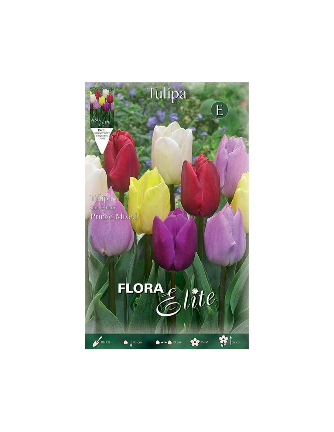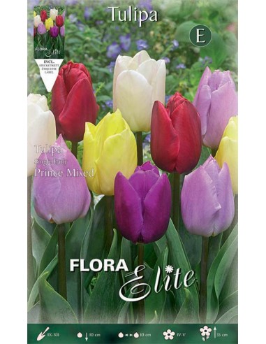 Il Tulipano Prince Mixed è una selezione di diverse varietà di tulipani Single Early, che si distinguono per la loro forma a coppa e per i loro colori vivaci. Questa miscela offre una combinazione di tonalità calde e fredde, che crea un effetto visivo molto dinamico e accattivante.