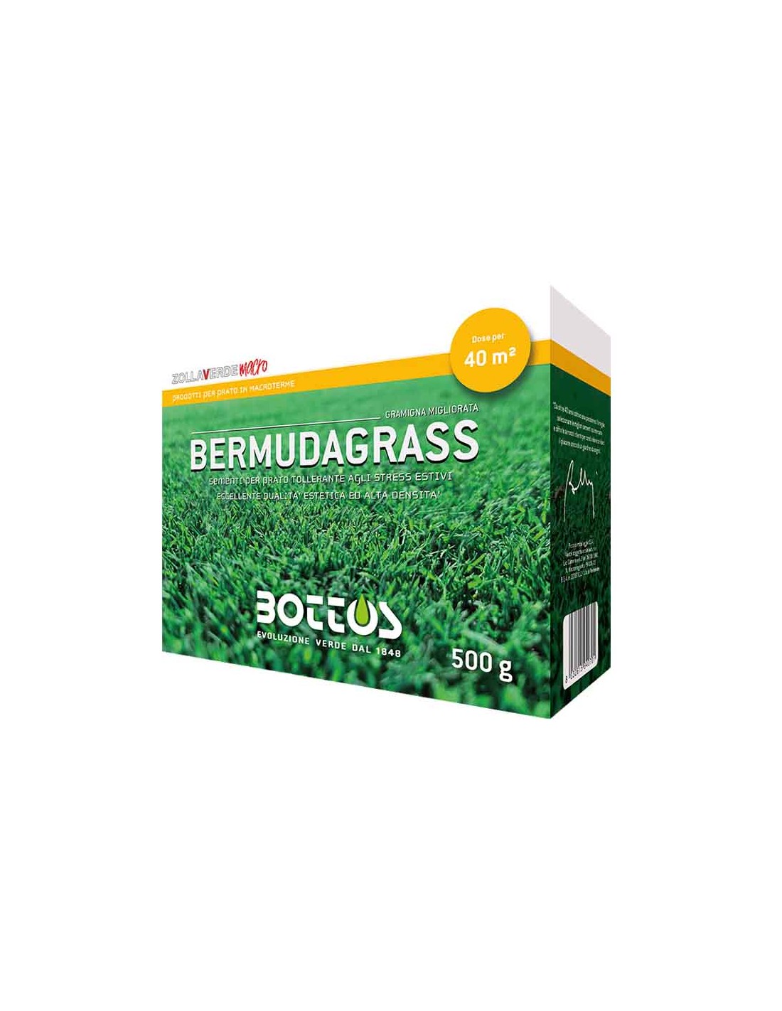 Il BERMUDAGRASS di Bottos è una miscela avanzata di due varietà selezionate di gramigna migliorata, studiata per esaltare le migliori caratteristiche di questa specie, combinando biodiversità e performance superiori. Questo blend unisce la rusticità tipica della gramigna con una finezza fogliare eccezionale, un'aggressività e capacità di colonizzazione rapida anche nelle fasi iniziali di insediamento, un colore intenso e una resistenza elevatissima al calpestio.