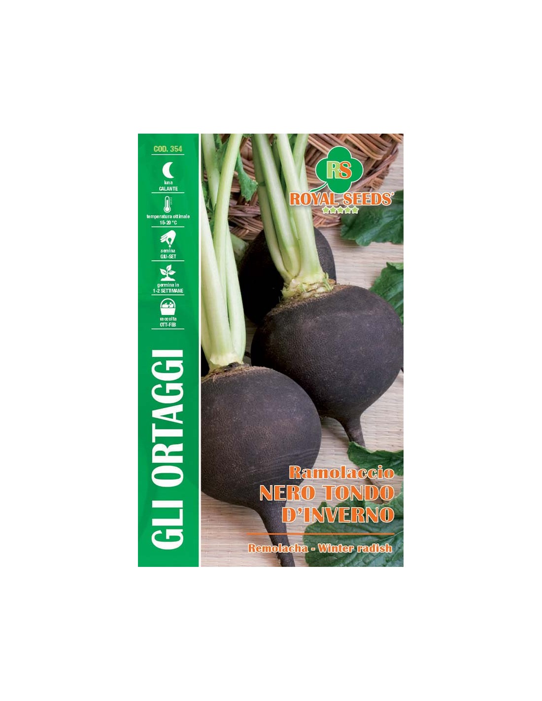 Il Ramolaccio Nero Tondo d'Inverno della ditta Royal Seeds è una varietà rustica e antica, apprezzata per la sua polpa bianca e croccante protetta da una caratteristica buccia nera e rugosa. Questa radice è la scelta perfetta per chi desidera arricchire la propria collezione di sementi da orto con un ortaggio capace di resistere alle basse temperature e offrire benefici nutrizionali preziosi durante la stagione invernale.