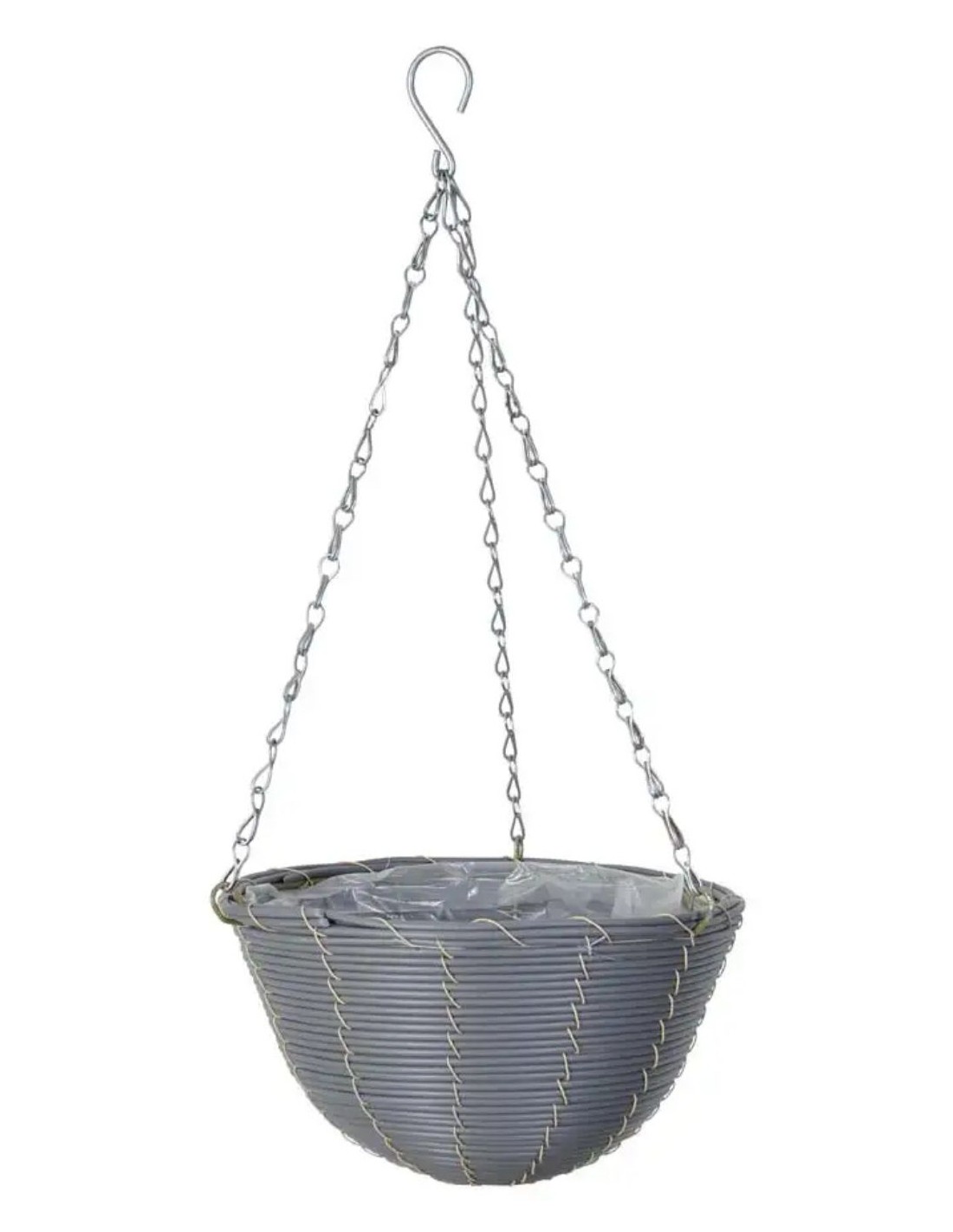 Vaso Basket Grigio con Supporto: Eleganza Sospesa per le Tue Piante