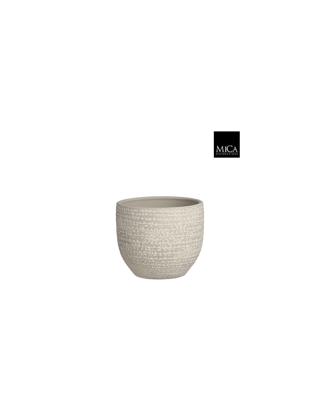 Ciò che distingue questo coprivaso è la sua superficie. Presenta una textura a rilievo moderna (a volte descritta come un relief flakes pattern) che dona profondità visiva e un tocco tattile distintivo. Questa finitura grezza e materica cattura la luce in modo dinamico, evitando l'effetto piatto tipico dei coprivaso lucidi.