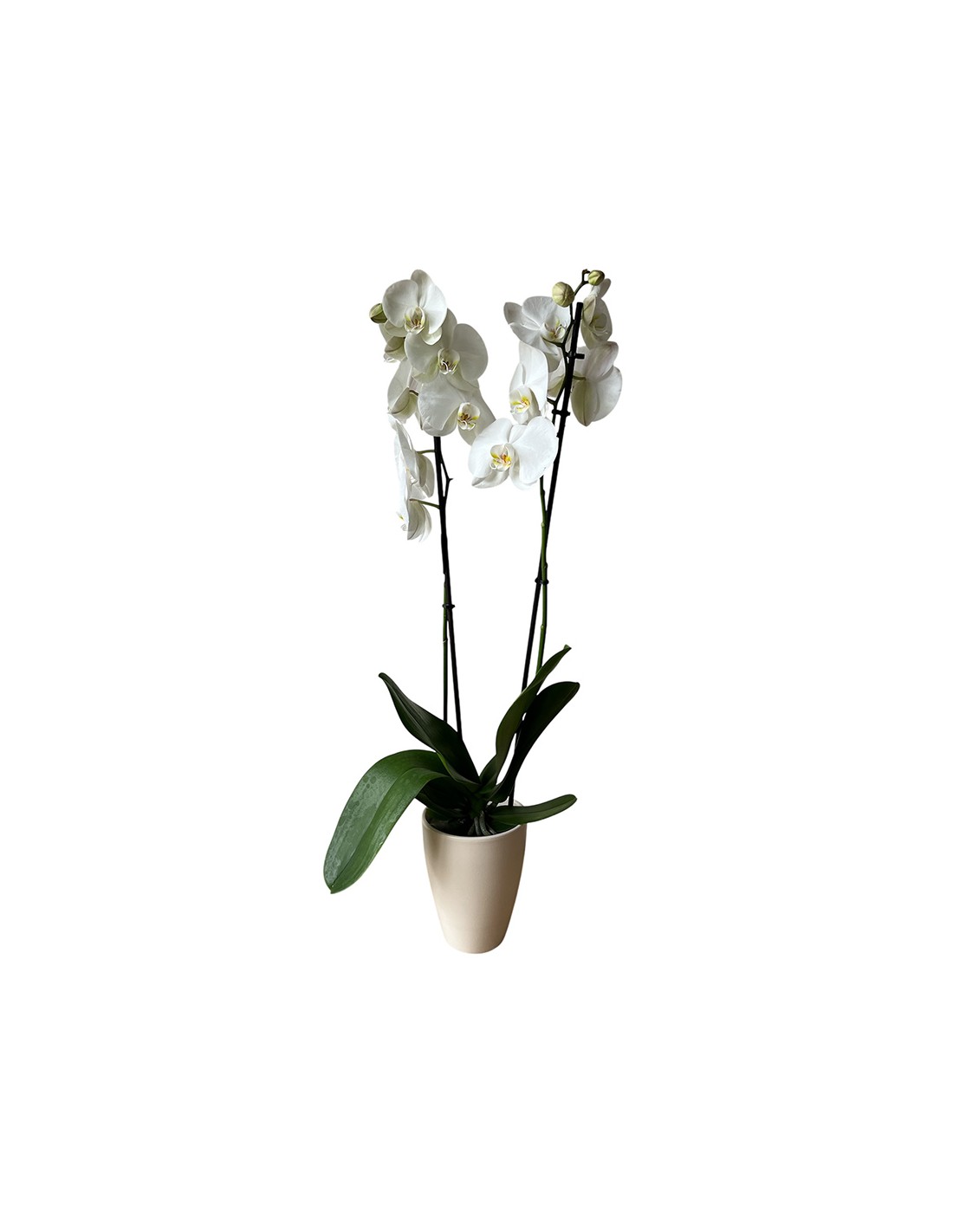 Il nostro coprivaso Tusca, anche in versione vasi in ceramica grazie alla sua forma alta, sostiene la Phalaenopsis e nasconde con eleganza i vasi di coltivazione, trasformando un elemento funzionale in un dettaglio di design.