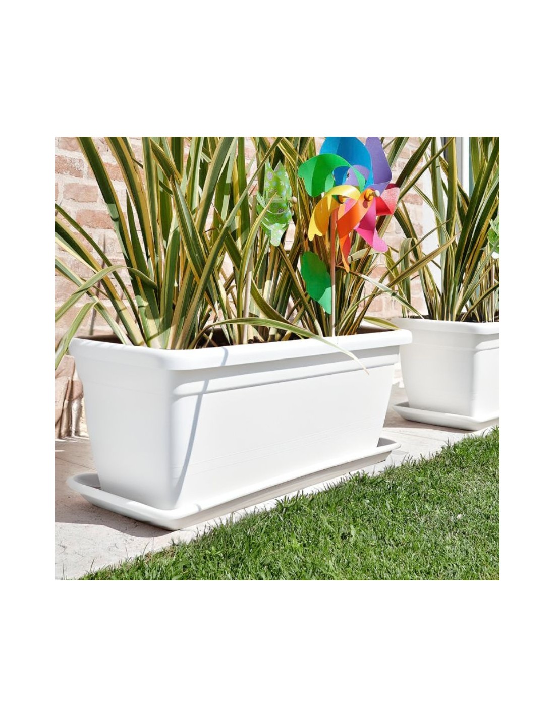 Sottovaso Rettangolare Anthea Bianco VECA. Perfetto per fioriere, raccoglie l'acqua in eccesso proteggendo balconi e pavimenti.